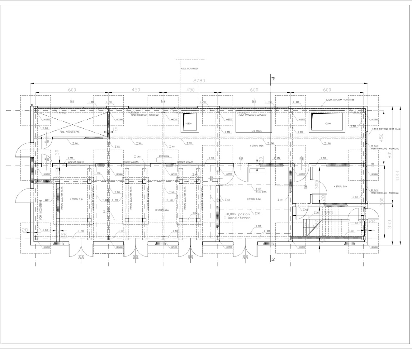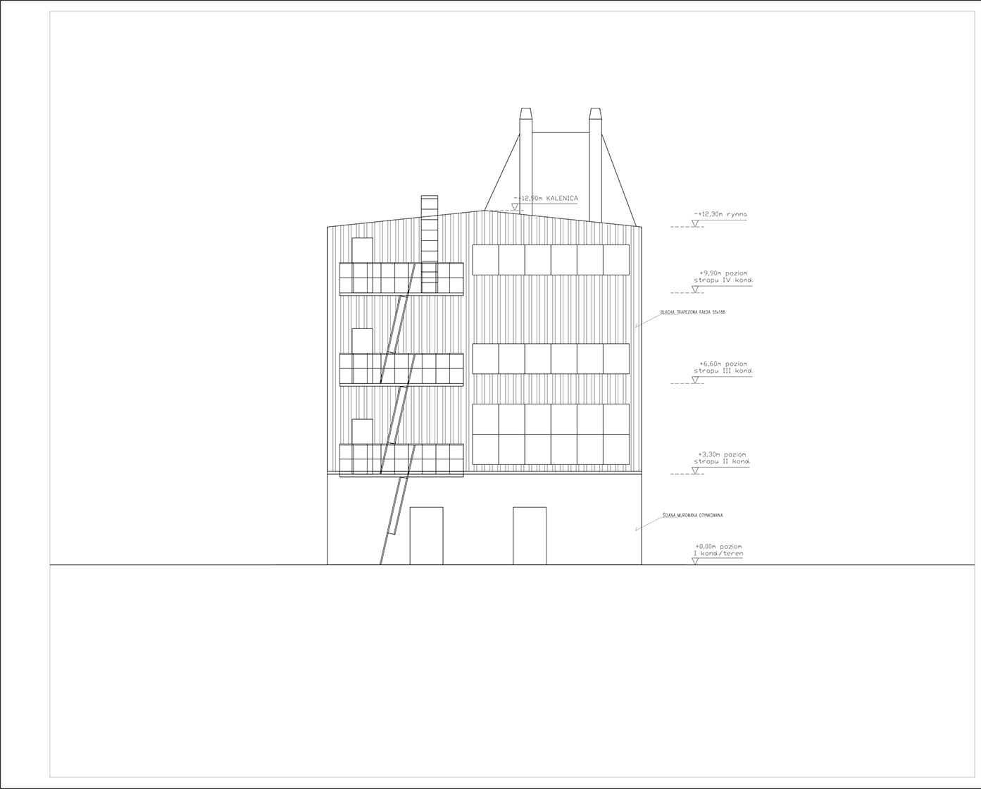Rzuty kondygnacji, przekroje, elewacje